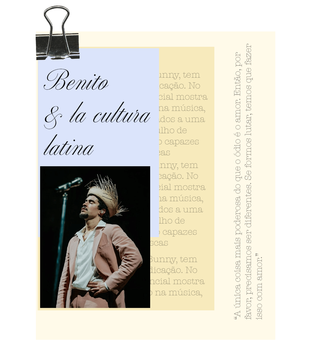 “A única coisa mais poderosa do que o ódio é o amor. Então, por favor, precisamos ser diferentes. Se formos lutar, temos que fazer isso com amor.” - Bad Bunny