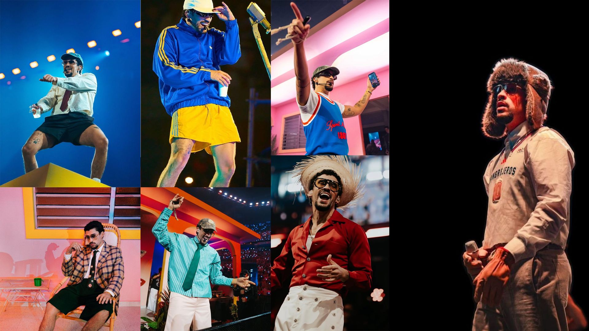 Ao longo da sua turnê, que já conta com mais de 50 shows, Benito vem explorando camisas vintage misturadas com gravatas de seda aleatórias, jardineiras jeans, shorts de cetim e roupas de activewear vintage. Noite após noite, o estilo pessoal de Bad Bunny vem se lapidando e mostrando sua nova face.