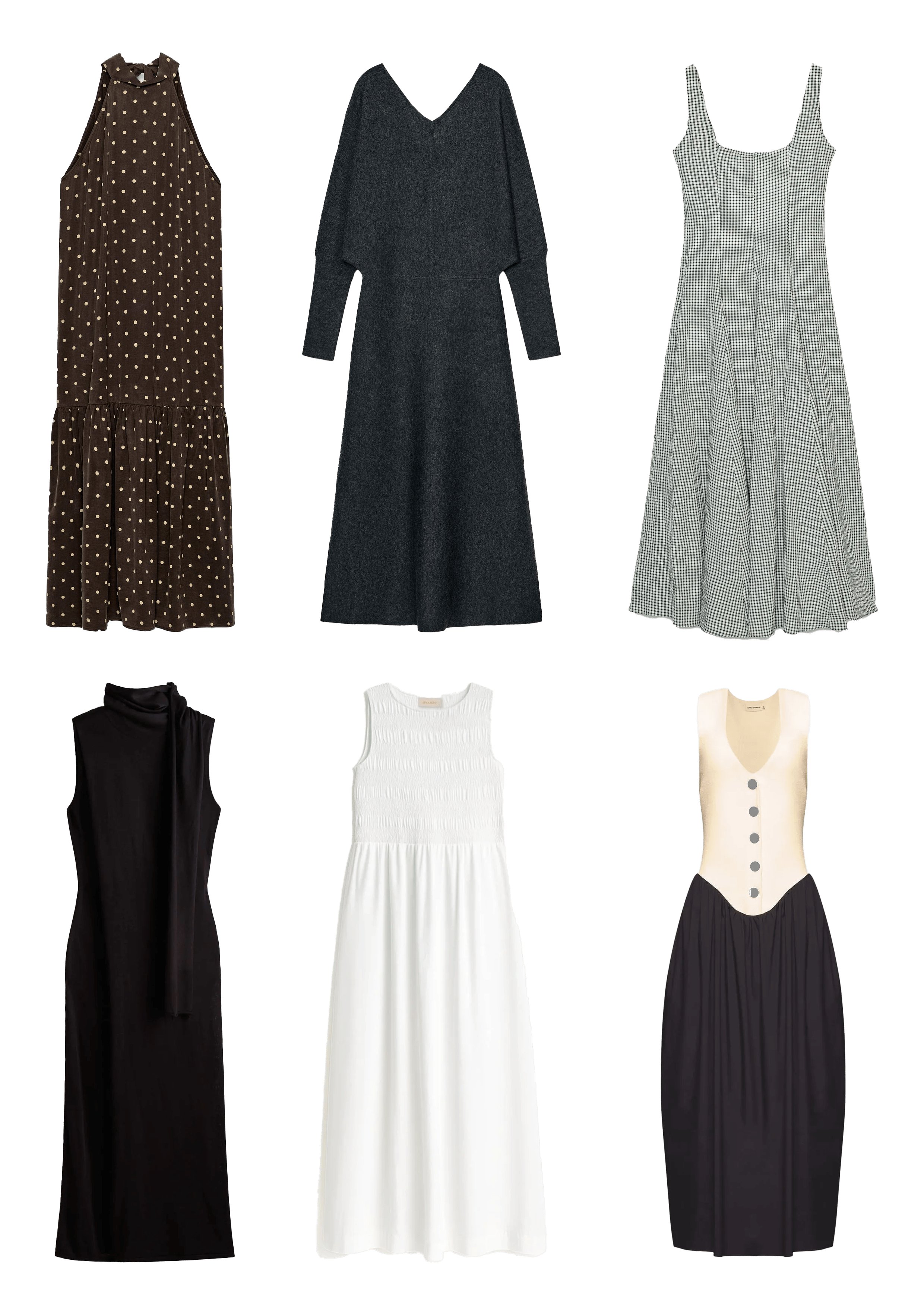 Selecionei 6 vestidos que traduzem esse mood e que considero ótimos curingas para ter no armário pensando em looks de trabalho. Todos funcionam super bem com scarpin, kitten heel ou até um mocassim.