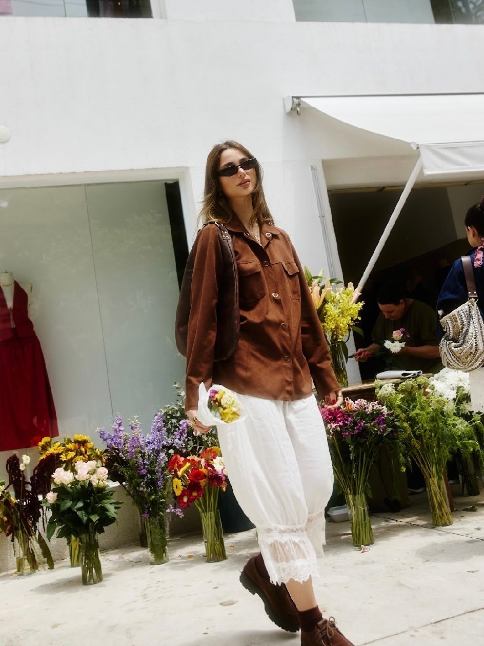 Também desenvolvo um trabalho curatorial na minha plataforma pessoal, onde compartilho meus processos criativos, descobertas de materiais sustentáveis, marcas independentes que admiro e minha visão sobre moda e estilo. Gosto de montar looks que reflitam minha personalidade, misturando referências de passarela com o que observo no dia a dia. Encaro tudo como parte de uma grande curadoria: reparo nos uniformes de trabalho (sou apaixonada por essa estética workwear), nas pessoas nas ruas, nas galerias de arte e em tudo que me cerca. Gosto de me inspirar nas coisas simples, nas texturas e nas histórias que encontro no cotidiano.
