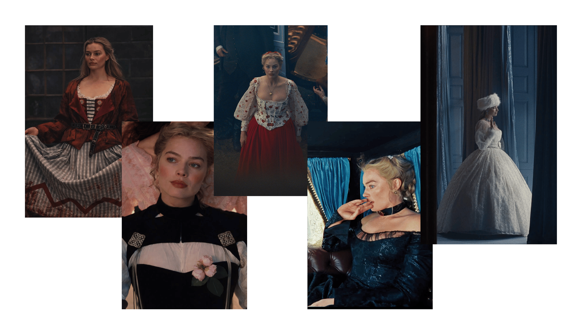 O figurino, criado pela figurinista Holly Waddington, parte da silhueta da moda vitoriana, mas a distorce de forma deliberada. As roupas parecem históricas, mas nunca totalmente corretas: há volumes exagerados, mangas enormes, proporções estranhas.