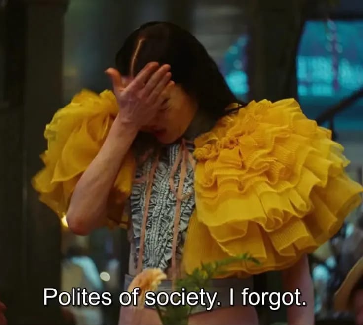 Como em muitos outros filmes do Lanthimos, o diretor não se preocupa apenas em recriar uma época, mas em reinventar um universo visual. Em Pobres Criaturas, o figurino não é apenas ornamentação, mas sim um diário visual da liberdade crescente da Bella.