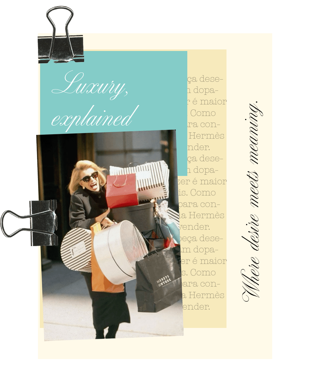 Temos mais acesso do que nunca a fotos, vídeos e conteúdos — além de dicas constantes do que torna algo interessante, bonito ou valioso. O luxo se tornou um acesso restrito, difícil de democratizar, em uma sociedade 100% antenada.