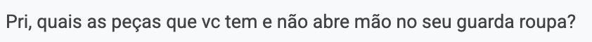 Oii, eu adoro pensar nessas respostas! Foi muito difícil, sou muito apegada a quase tudo, mas cheguei nas minhas top 3 peças: